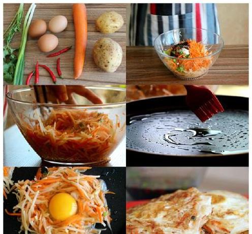 推荐一种简单的菜谱:将鸡蛋、土豆、胡萝卜、盐、糖和胡椒粉准备好。将土豆清洗干净削皮并切丝,胡萝卜同样切丝备用。取适量葱花拌入,加适量的调料后,将土豆丝等整成圆饼状,打入鸡蛋,小火烙制至熟。