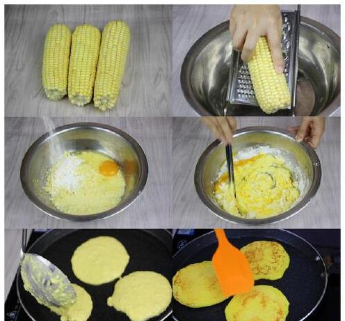 推荐的方法是:清洗玉米,用刨丝板制成玉米浆,加入鸡蛋、糖和少量面粉混合。用热油平底锅煎至两面金黄。